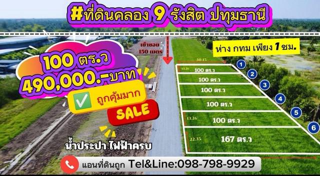#ที่ดินคลอง 9 รังสิต (ฝั่งตะวันออก)ปทุมธานี100 ตร. 490,000.-