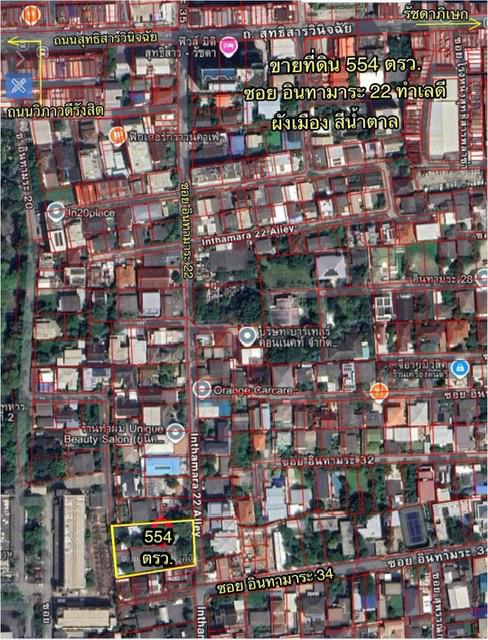R69-068ขายที่ดิน 554 ตรว.ซอยอินทามาระ 22 ทำเลดี ที่ดินถมแล้า ถนนซอยกว้าง ผังเมืองสีน้ำตาล เดินทางเข้าออกสะดวกได้หลายเส้นทาง อาทิเช่น ถนนวิภาวดีรั
