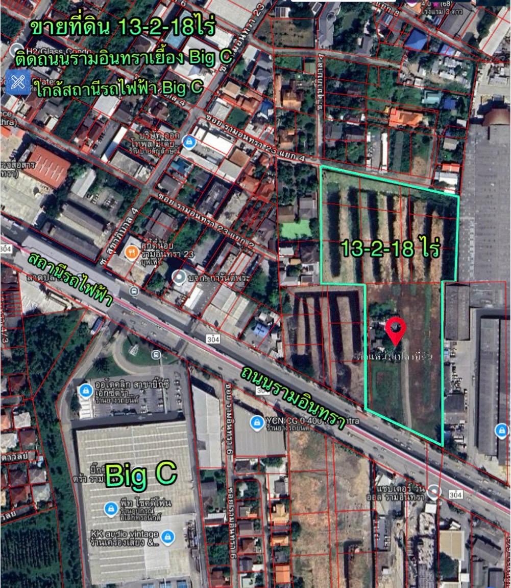 R69-089ขายที่ดินแปลงสวย ติดถนนรามอินทรา กม.2 ใกล้กับรถไฟฟ้าสถานีลาดปลาเค้า เขตบางเขน จังหวัดกรุงเทพมหานคร ขนาดที่ดิน : 13-2-18 ไร่ (หรือ 5