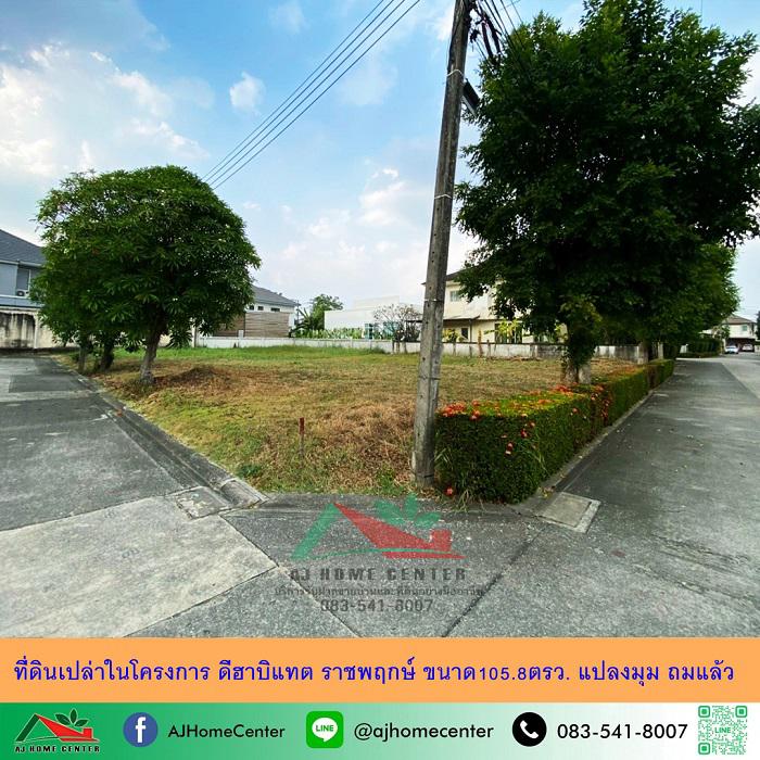 ขายที่ดินเปล่าในโครงการ ดีฮาบิแทต ราชพฤกษ์ ขนาด105.8ตรว. แปลงมุม ถมแล้ว