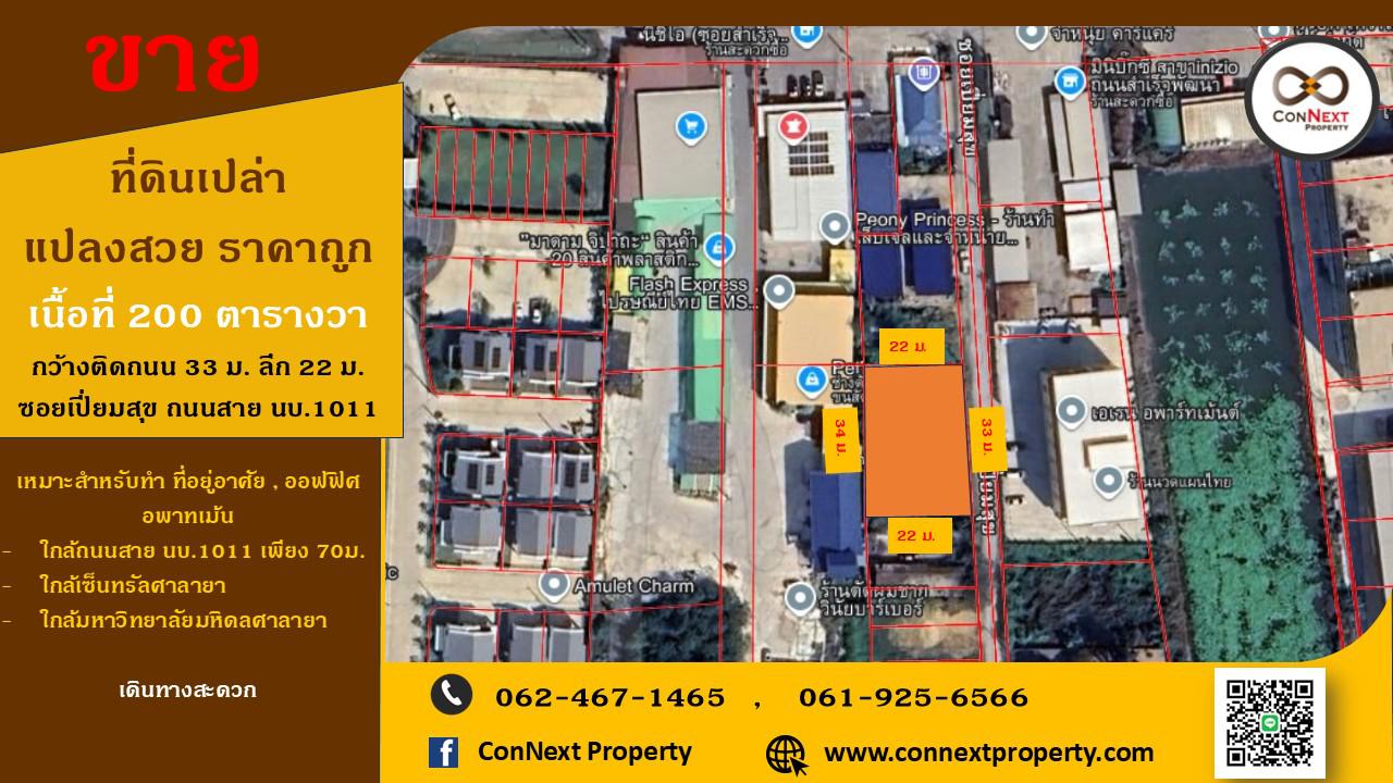 ที่ดินเปล่า แปลงสวยเนื้อที่ 200 ตารางวาซอยเปี่ยมสุข