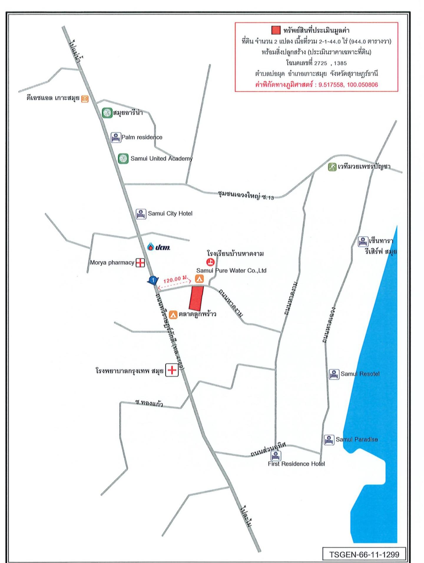 Koh Samui ขายที่ดินในเกาะสมุยติดถนนเข้าซอยบ้านหาดงาม จากถนนรอบเกาะ100 เมตร. ตั้งอยู่โซนเฉวง ใกล้โรงพยาบาลกรุงเทพฯ,ใกล้หาดเฉวง,ห้างเซ็นทรัล,โลตัสเฉวง,แม็คโครเฉวง,สนามบิน