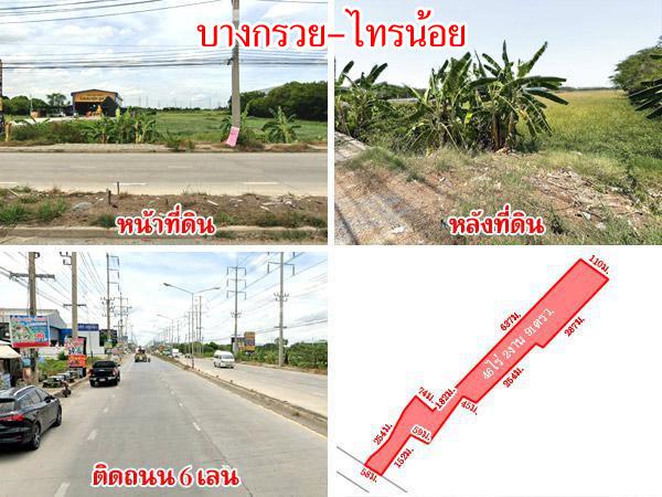 ที่ดินติดถนน บางกรวย-ไทรน้อย 46 ไร่กว่า ใกล้ตลาดพงศ์ไพบูลย์ แหล่งชุมชน เดินทางสะดวก