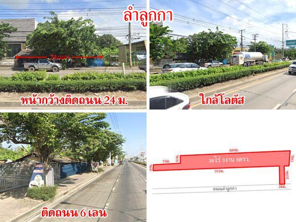 ที่ดินติดถนน ลำลูกกา คลอง 6 เนื้อที่ 36 ไร่กว่า ใกล้โลตัส โฮมโปร รถไฟฟ้าสายสีเขียวเหนือ เดินทางสะดวก