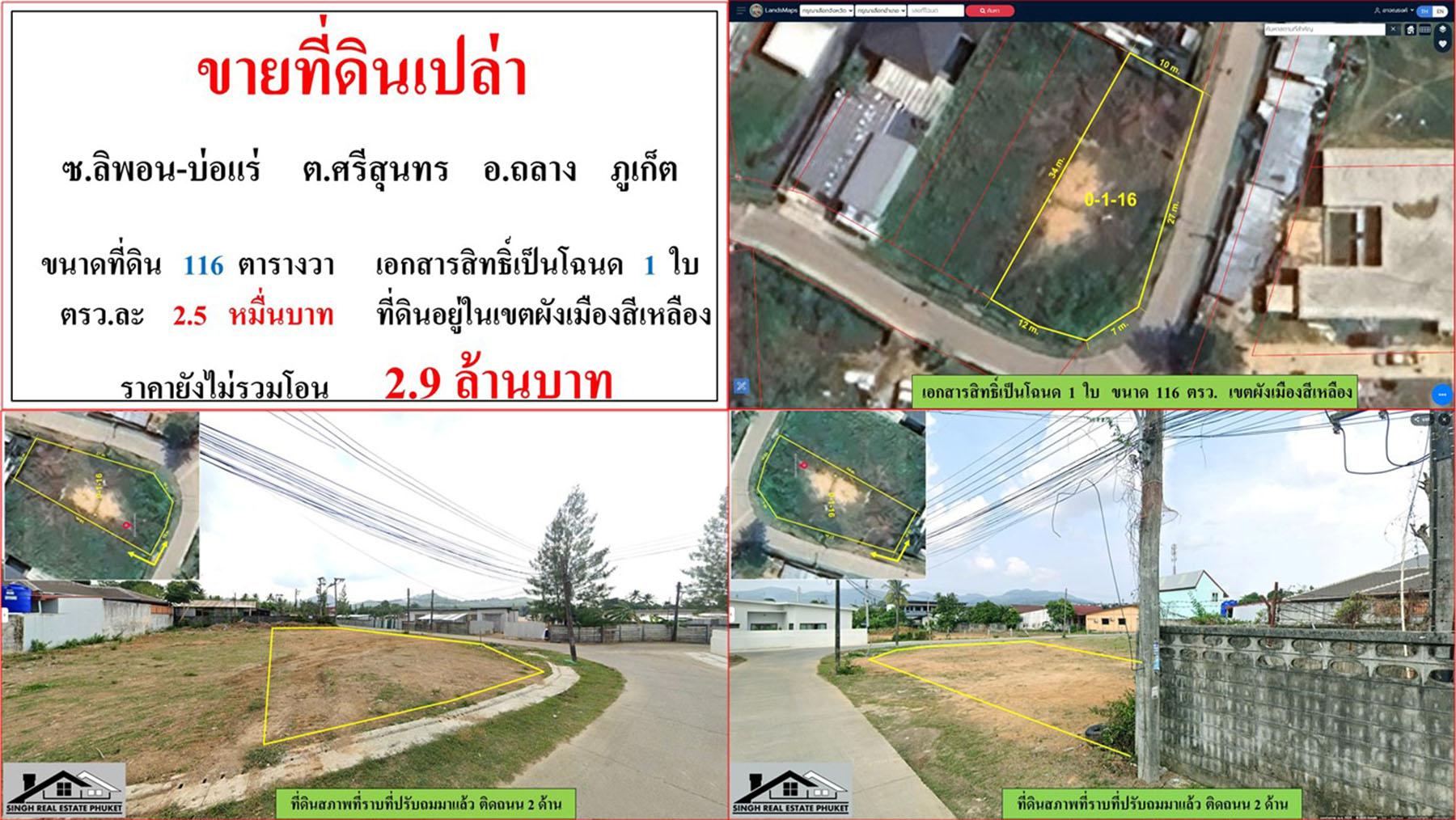 ขายที่ดินเปล่า ขนาด 116 ตรว. ซ.ลิพอน-บ่อแร่ ต.ศรีสุนทร อ.ถลาง ภูเก็ต