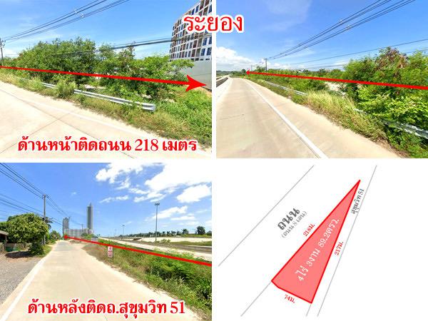 ติดถนน 2 ด้าน ด้านหน้ากว้าง 218 ม. ด้านหลังกว้าง 217 ม.