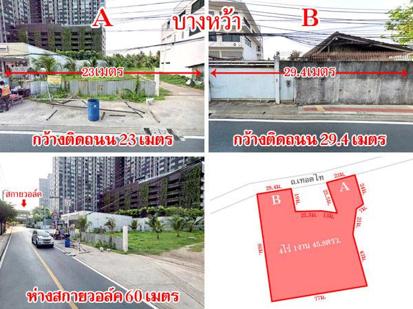 ที่ดินบางหว้า ติดถ.เทอดไท ใกล้ Skywalk สถานีรถไฟฟ้าบางหว้า เพียง 60 ม.