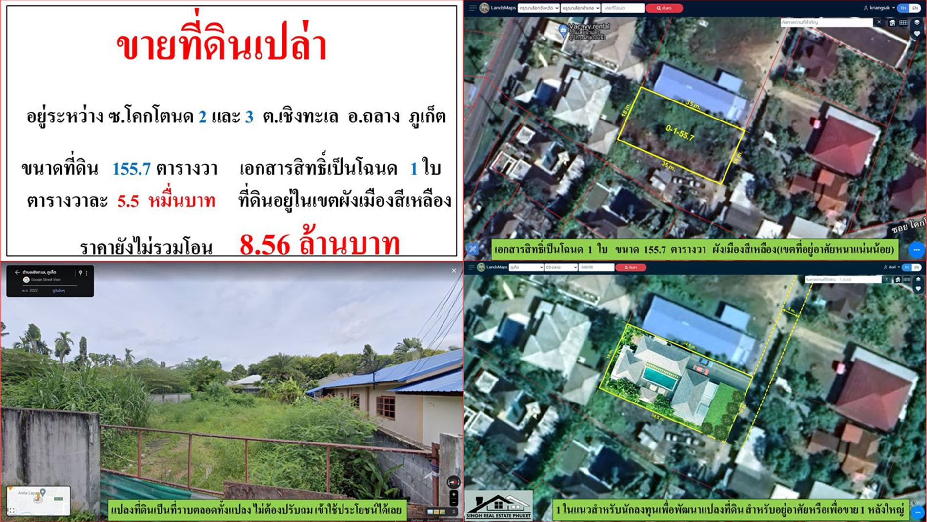 ขายที่ดินเปล่า ขนาด 155.7 ตรว. อยู่ระหว่าง ซ.โคกโตนด 2 และ 3 ต.เชิงทะเล อ.ถลาง ภูเก็ต