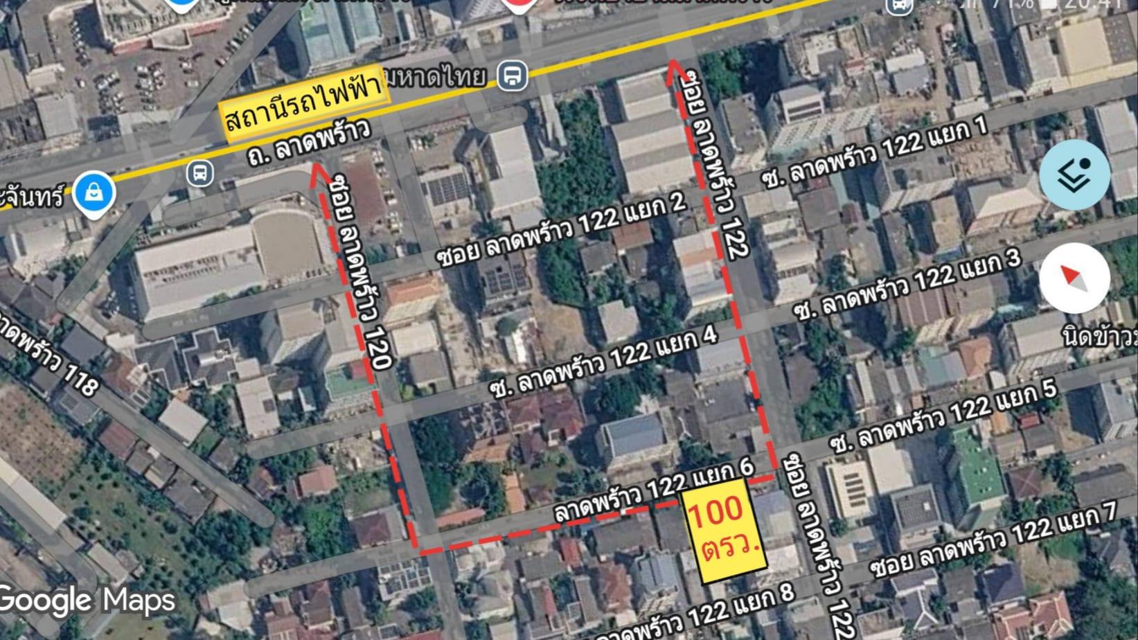 ขายที่ดินเปล่าถมแล้ว100 ตรว. ถ. ลาดพร้าว ซอย122 แยก 6 ห่างรถไฟฟ้าสถานีมหาดไทยแค่ 250 เมตร แขวงคลองจั่น เขตบางกะปิ กทม.