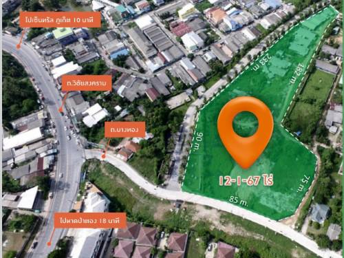 หน้ากว้างติดถนนบางทอง 85ม. เหมาะลงทุนหมู่บ้านจัดสรร โรงแรม รีสอร์ท
