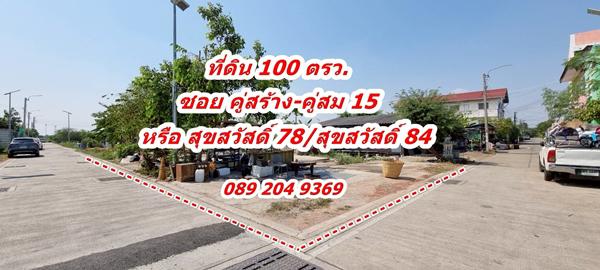 ขาย ที่ดิน 100 ตรว. ทำเลดี แปลงมุม ติดถนน 2 ด้าน ซอย คู่สร้าง-คุ่สม 15 ถนน สุขสวัสดิ์ 78 หรือ สุขสวัสดิ์ 84 คุณนก0892049369
