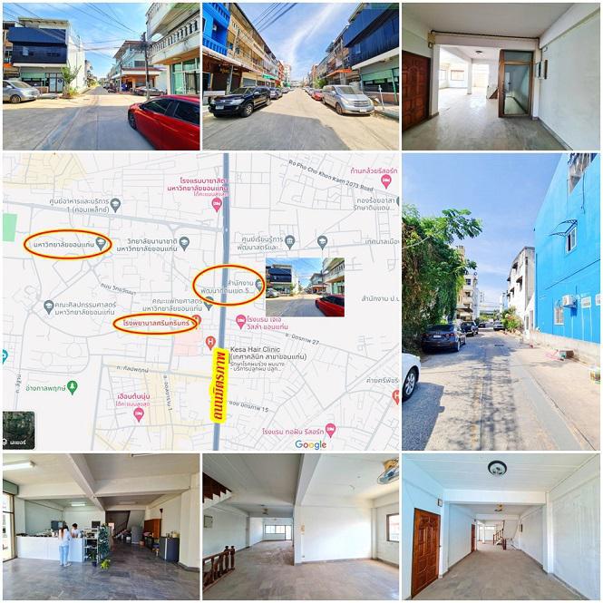 (ขาย/เช่า)อาคารพาณิชย์ตึกเดี่ยวๆ ติดถนน2ด้าน ทำเลดี ตรงข้ามมหาลัยขอนแก่น Central-Campus รพ.ศรีนครินทร์/ราชพฤกษ์ 100ม.จากถนนมิตรภาพ แหล่งชุมชน-ศึกษา-กิน-เที่ยว-งาน 2ล็อคติดกัน 3ชั้นมีดาดฟ้า  เดินทางสะดวก เมืองขอนแก่น