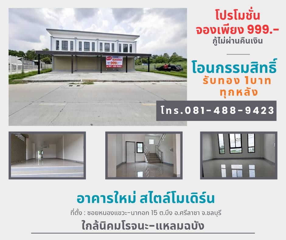 ขายอาคารพาณิชย์ ต.บึง อ.ศรีราชา จ.ชลบุรี พื้นที่ 29.3 ตรว. ซอยหนองแขวะ-นากอก 15 ใกล้นิคมอุตสาหกรรมโรจนะ แหลมฉบัง