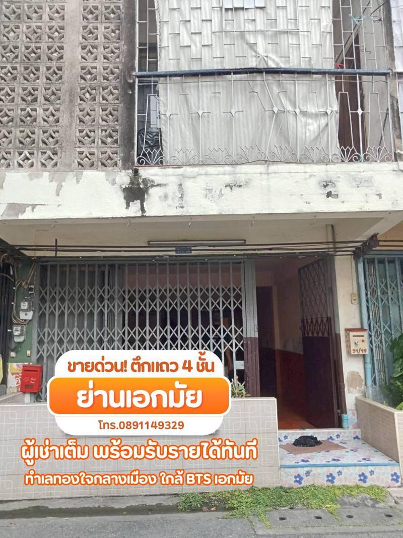 ขายด่วน! ตึกแถว 4 ชั้น ย่านเอกมัย แยก 1 — ผู้เช่าเต็ม พร้อมรับรายได้ทันที