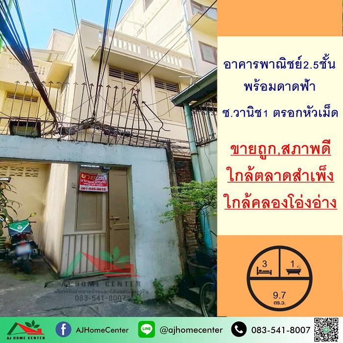 ขายถูก4.99ล้าน อาคารพาณิชย์2.5ชั้น 9.7ตรว. ซ.วานิช1 ตรอกหัวเม็ด ใกล้ตลาดสำเพ็ง