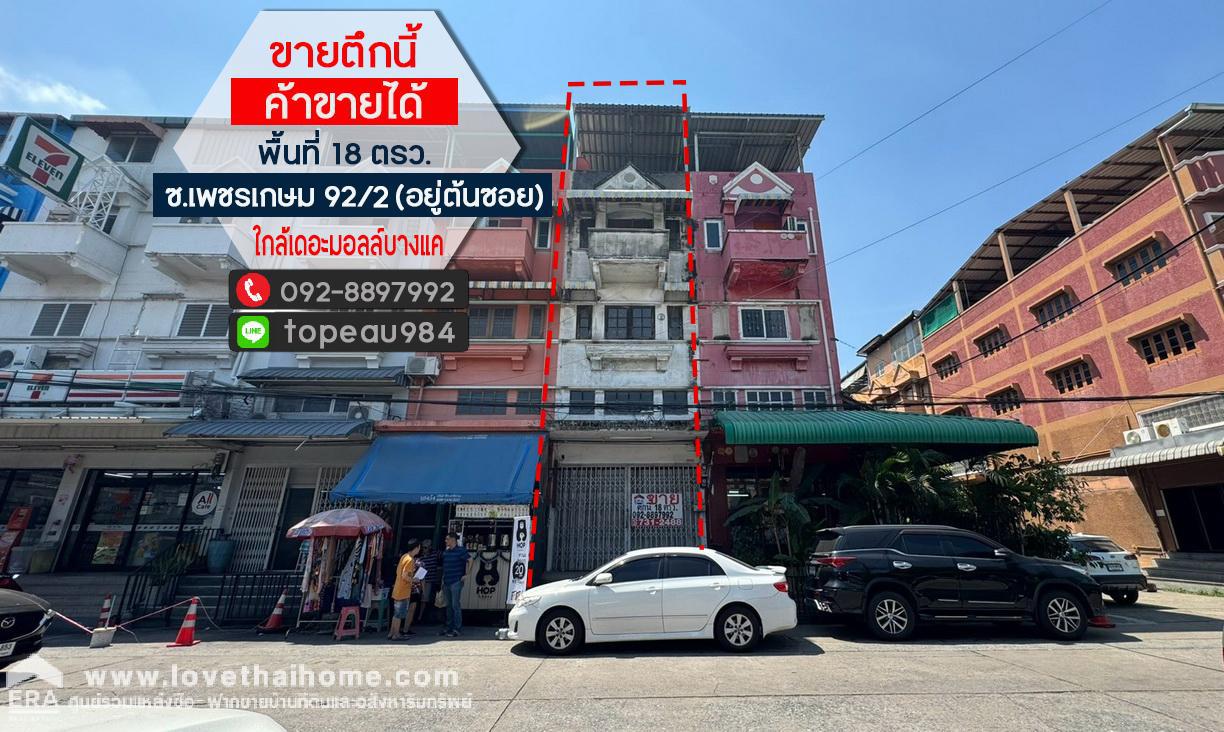 ขายตึกแถว 3.5 ชั้น ถนนเพชรเกษม 92/2 ซอยหมู่บ้านสุขสันต์ 2 พื้นที่ 18 ตรว. อยู่ต้นซอย ค้าขายได้ ใกล้เดอะมอลล์บางแค