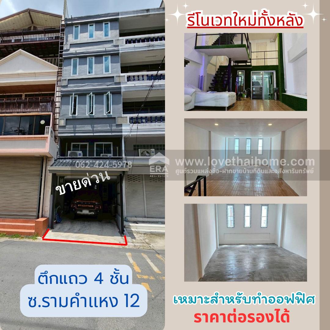 ขายตึกแถว 4 ชั้น ซ.รามคำแหง12 พื้นที่ 16 ตรว. รีโนเวทใหม่ทั้งหลัง ราคาต่อรองได้