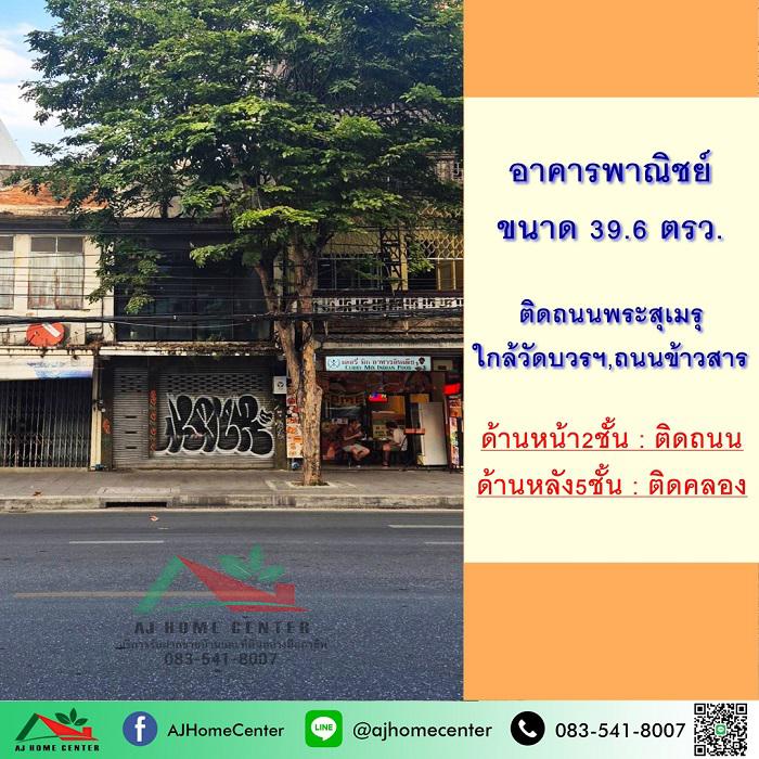 ขายตึก5ชั้น 39.6 ตรว. ด้านหน้าติดถนนพระสุเมรุ ด้านหลังติดคลอง ใกล้ถนนข้าวสาร