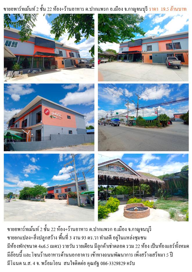 ขายอพาร์ทเม้นท์ 2 ชั้น 22 ห้องและร้านอาหาร ต.ปากแพรก อ.เมือง จ.กาญจนบุรี