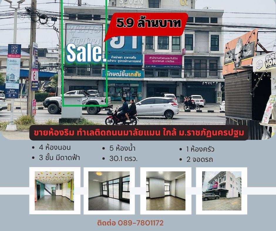 ขายอาคาร 3 ชั้น ติดถนนมาลัยแมน ใกล้ ม.ราชภัฏนครปฐม